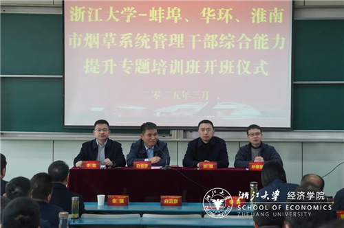 2025年3月18日,蚌埠、华环、淮南市烟草系统管理干部综合能力提升专题培训班在浙江大学正式启动。本次培训紧扣“十四五”收官与“十五五”谋篇双重目标,由浙江大学经济学院承办,蚌埠、华环、淮南烟草系统骨干干部参训,通过“理论迭代+实践攻坚”双轮驱动,为行业现代化治理能力升级提供人才支撑。