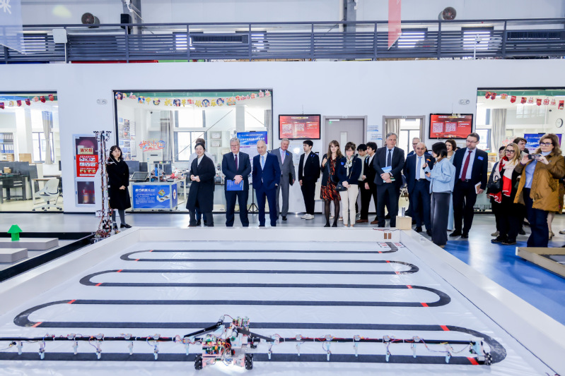 访问期间,双方举行了创新创业座谈会。管理学院吴晓波教授、中控技术总裁助理杨乐、云深处科技欧洲区销售总监张亚韬分别作了专题报告。代表团参观了机器人与智能装备学生创新实践基地,并与在校欧盟留学生代表亲切交流。